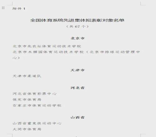 据国家体育总局人事司网站消息,昨天(10月27日),全国体育系统先进集体和先进个人评选表彰工作领导小组办公室发布“关于全国体育系统先进集体和先进个人拟表彰对象的公示”: