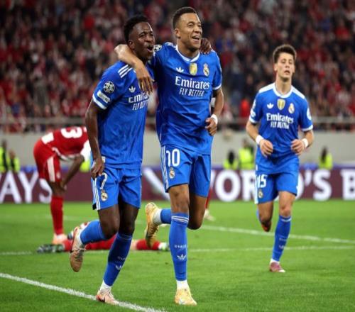 下半场易边再战。第52分钟,皇马丢球了。塔雷米抢点头球顶进。5分钟后,维尼修斯突入禁区后的射门被挡出。第59分钟,维尼修斯在边路突破,随即送出倒三角回传球,姆巴佩直接推射破门,完成大四喜!第81分钟,奥林匹亚科斯再次缩小差距。卡埃比头球顶进!之后卡埃比的射门踢偏,错失了绝平的机会。最终,皇马4-3险胜奥林匹亚科斯。姆巴佩5场欧冠打进9球,刷新个人单赛季欧冠进球纪录。